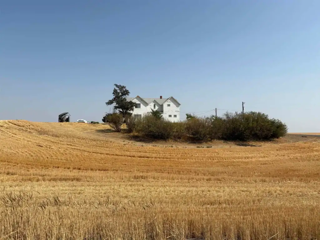 Estate Sale – Large Farmhouse project on 22 acres! This home has been in the same family for years. Easy access to I-90 and centrally located between Moses Lake, Tri-Cities and Spokane. This property has an active farm lease through December 2026. Home will have a new propane furnace and new roof installed before closing with a full price offer so you are all set for winter weather. Well was just tested at 11.5gpm. Main floor has 1 large bedroom and full bathroom, Large formal dining room and living room and laundry off the kitchen. Upstairs has 4 additional bedrooms and full bath with 2 stairways (one with direct access to the back porch) for possible ADU set up. Multiple outbuildings including garage, 2 grain silos, chicken coop/bunkhouse, 792 sqft shop with roll up door and separate subpanel, and an old outhouse. Property is to be sold in ‘as is’ condition and priced accordingly. Come and bring your remodel ideas, your paint brush and build instant sweat equity.
